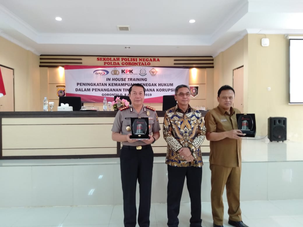 Kab. Gorontalo – Dalam rangka peningkatan kemampuan penegak hukum dalam penanganan perkara korupsi, Komisi Pemberantasan Korupsi (KPK) R.I. melaksanakan kegiatan In House Training, Kamis (8/8/2019). Kegiatan yang mengambil tempat di SPN Batudaa Kab.Gorontalo dibuka langsung Kepala Kejaksaan Tinggi Gorontalo Dr.Jaja Subagja, SH.,MH, diikuti unsur Kejaksaan, Kepolisian dan BPK serta BPKP. Dalam kegiatan tersebut Kejaksaan mengikut sertakan jaksa sebanyak 20 orang.
