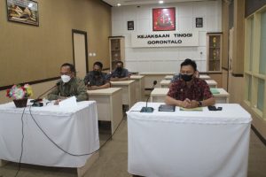 Kejati Gorontalo_Wakil Kepala Kejaksaan Tinggi Gorontalo Sila Pulungan didampingi Asisten Intelijen Otto Sompotan, melaksanakan Video Confrence (Vicon) bersama Direktorat D pada Jaksa Agung Muda bidang Intelijen Kejaksaan Agung Republik Indonesia, Jumat (27/8/2021).